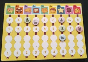 Plateau joueur en cours de partie. Si les dés font « 9 », on complète aussi la case à coté du jeton « 9 ». Il ne faut pas l’oublier.