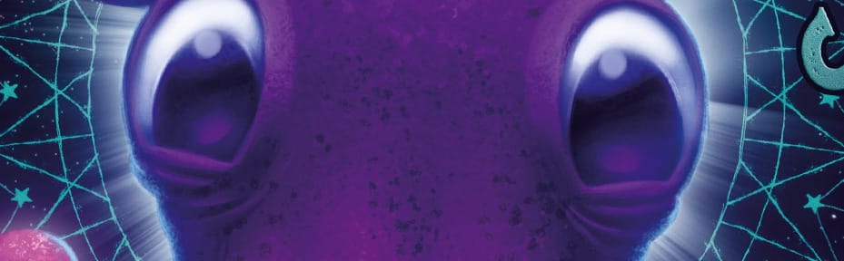 Cosmoctopus, illustré par George Doutsiopoulos, est un jeu de construction de moteurs et de collecte de tentacules pour 1 à 4 adeptes. Vous voilà donc fan d’une sorte de Cthulhu qui ne dit pas son nom (en même temps, on sait qu’il ne faut surtout pas le prononcer…) – et grand fou que vous êtes, vous essayer de l’attirer à vous.