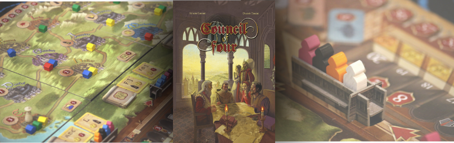 Daniele Tascini et Simone Luciani, auteurs des hits ludiques Tzolk’in et Les voyages de Marco Polo, se réunissent de nouveau en conseil (à deux) pour une nouvelle sortie 2015 : Council of four, le conseil des quatre, in french dans le texte…
