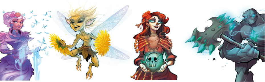 La boîte de base (environ 36€) contient 6 clans : « le malléable Clan de l’Eau, le paisible Clan de la Fleur, l’implacable Clan du Crâne, l’innombrable Clan du Sang, le réfléchi Clan du Météore ou l’inflexible Clan de la Pierre » nous dit-on. Chaque clan est unique, avec son background, sa dynamique et ses effet. Chaque paquet comprend 3 Héros et 6 Ordinaires différents et des extensions sont déjà prévues.
