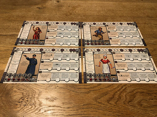 Outre le système de jeu simplifié à l’extrême (mais pas simpliste), et la mécanique de folie/XP qui reste pour moi ce qui porte le jeu dans un équilibre délicieusement malsain, en ce qui me concerne, la plus grande réussite du jeu est d’avoir réussi à créer une galerie de personnages plus barrés les uns que les autres, avec un côté pince-sans-rire fantastique (je suis toujours amoureux de la Desperate Housewife et de sa grosse hache), une magnifique adéquation entre le concept du personnage et son pouvoir spécial qui permet de faire planer une ambiance si particulière sur nos tables.