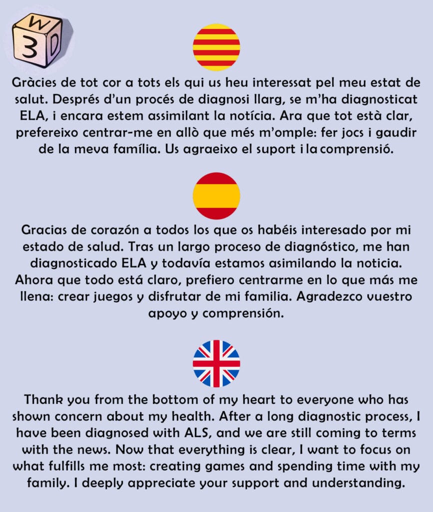 Dani Garcia, auteur de jeux espagnol, a récemment annoncé avoir été diagnostiqué de la sclérose latérale amyotrophique, une maladie neurodégénérative progressive. Cette annonce a suscité un flot de messages de soutien de la part de ses collègues, éditeurs et fans.
