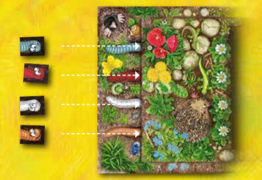 Durant son tour, le joueur peut poser son jeton (représentant sa pâquerette ou sa fraise) sur la ligne idoine du plateau de jeu, face au tunnel du ver de terre qui, à son avis, passera sa tête en premier. Bien sûr, plusieurs joueurs peuvent parier sur le même ver de terre, plus on est de fous plus on rit. D’ailleurs, le jeu est conseillé à 4 (même s’il se pratique de 2 à 4).