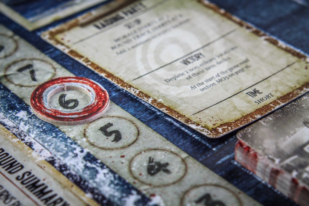 Si l’un des deux atteint zéro, la partie se termine. Les joueurs doivent aussi se risquer dans le froid, se battre contre des zombies, et faire attention à leurs rations et leurs déchets ! Décidément, beaucoup de choses peuvent mal tourner, dans Dead of Winter…