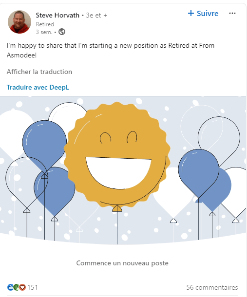 Bilan, la carrière d’Horvath a duré plus de 25 ans dans l’industrie. Le monsieur part à la retraite en annonçant sa décision sur sa page LinkedIn : « Après une longue et fructueuse carrière, j’ai pris la décision de prendre ma retraite.” Il est temps de jouer !