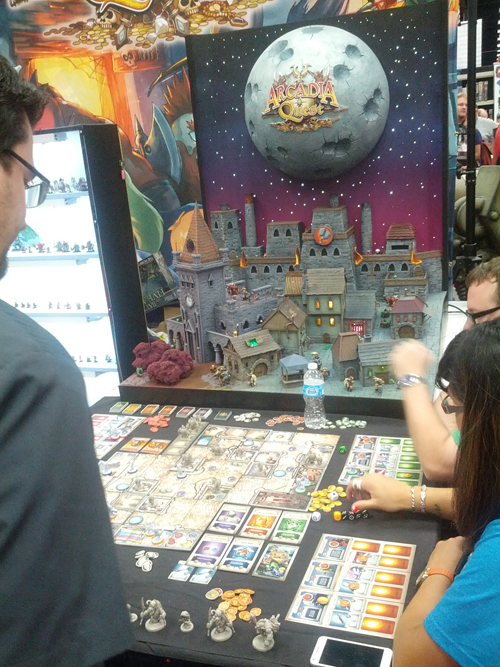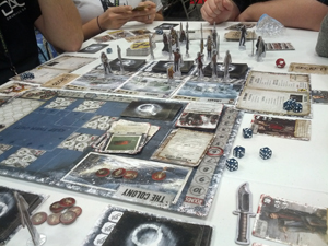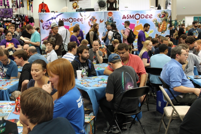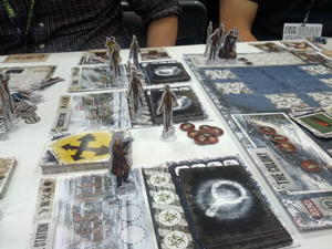 La tendance est aussi la venue de plus en plus nombreuse d’éditeurs Européens. Portal Games qui fait le voyage « pour tester » et qui vend toutes ses boites en quelques minutes. Iello et Asmodée qui sont partenaires officiels de la Gencon 2014 avec des stands bientôt aussi grands que ceux de FFG ou de Mayfair. Il m’a été dit que Asmodée aura un stand encore plus grand l’année prochaine. Pendant ce temps, Iello lance un jeu de zombie (Zombie15′) et un autre situé à New York (King of NY). Si ce n’est pas un signe ça ?