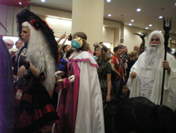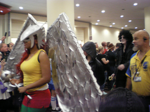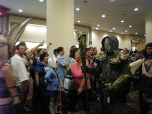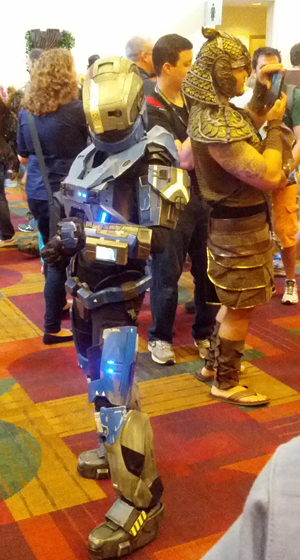 La plupart ne sont même pas inscrit au concours. Ils viennent à la Gencon depuis toutes les villes de l’état pour le fun de se réunir en costume. On retrouve toutes sortes de personnages de jeux vidéo, d’animés, de comics, de manga et même quelques personnages de jeux de figurines (Warhammer 40k !). La plupart sont vraiment de bonne facture et je suis étonné du soin qu’ils y ont apporté. Je vous laisse juge :