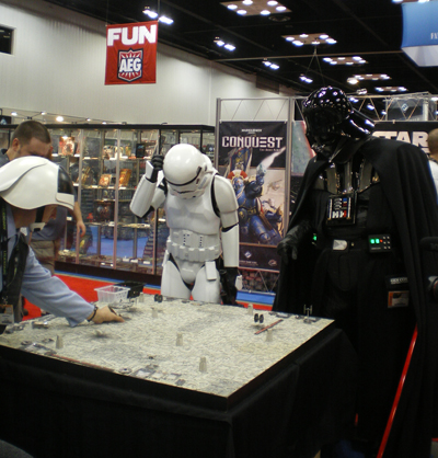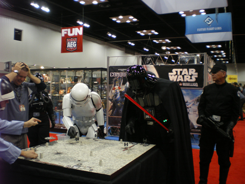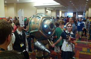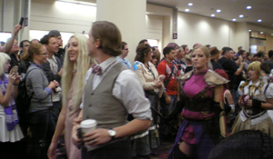 Par manque de sommeil je me suis levé un peu tard et suis arrivé au Convention center juste à temps pour voir la parade des gens costumés. Loin de l’ambiance « coincée » d’Essen, les gens ce jour là ne viennent pas nécessairement pour le jeu de société mais simplement pour montrer en public le costume qu’ils ont confectionné durant toute une année.