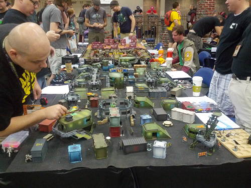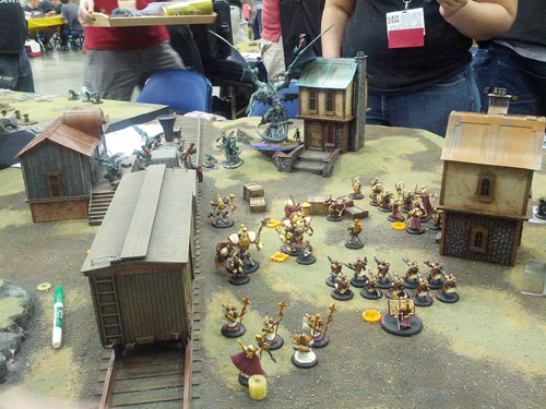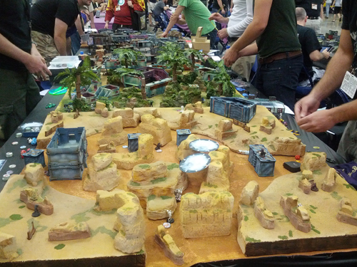 Ici, vous êtes dans le temple de l’améritrash et même si je le savais déjà, j’ai tout de même été impressionné par les salles de jeux. A la Gencon, tous les types de jeux de figurines sont joués sur d’immenses tables représentant des décors hyper détaillés.