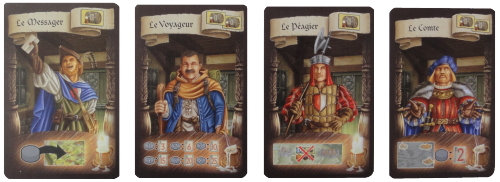 - Voyage : 4 cartes (Le Messager, Le Voyageur, Le Péagier, Le Comte)