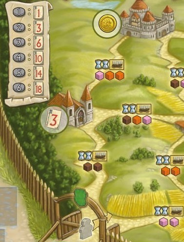 - d’une part, un joueur concentré sur le Voyage aura du mal à avoir des tuiles marchandises d’avance pour fournir lors des jours de Marché, du fait de sa production/consommation forcée de chariots.