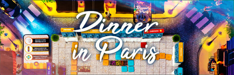 Loin de la crise sanitaire et économique que nous traversons, c’est pourtant le thème qui est abordé dans Dinner in Paris, un jeu proposé par la maison Funnyfox (Ceylan, Candy lab). Il s’agit d’un studio du groupe Hachette, groupe qui a fait beaucoup de bruit avec une arrivée fracassante dans le monde du jeu de société, notamment avec l’As d’or 2020 attribué à Oriflamme (via Studio H). Hachette, c’est donc le « petit » nouveau dont la cote monte en flèche !