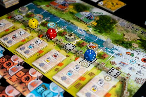 Il ne s’agit pas d’un jeu à PV, mais d’une course dans laquelle vous devez bien choisir vos dés (draft/contre-draft), afin de vous emparer le plus rapidement possible des éléments limités et placer tous vos ouvriers en premier. Le jeu offre aussi un solide mode solo.