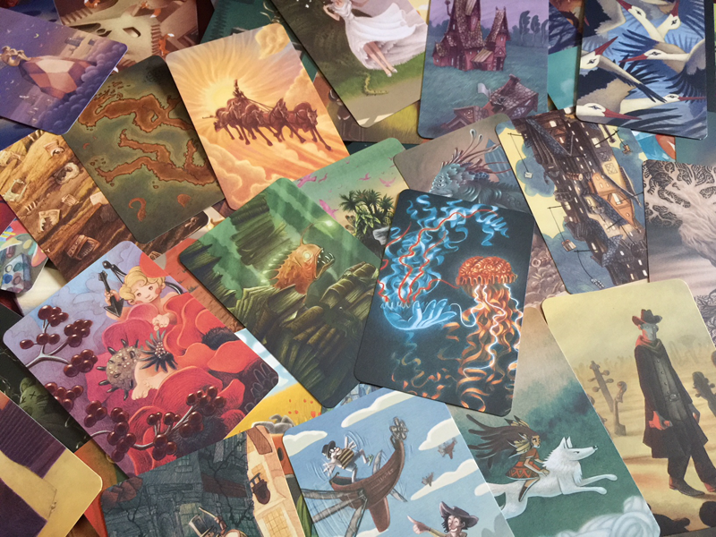 “Cette 7ème extension est signée Paul Echegoyen, illustrateur de bande dessinée et d’albums jeunesse, il utilise des techniques variées pour ses travaux. Plongez dans son univers doux et nostalgique. Ses dessins chatoyants vous embarquent vers des contrées insolites.” peut-on lire du côté de l’éditeur, Libellud.