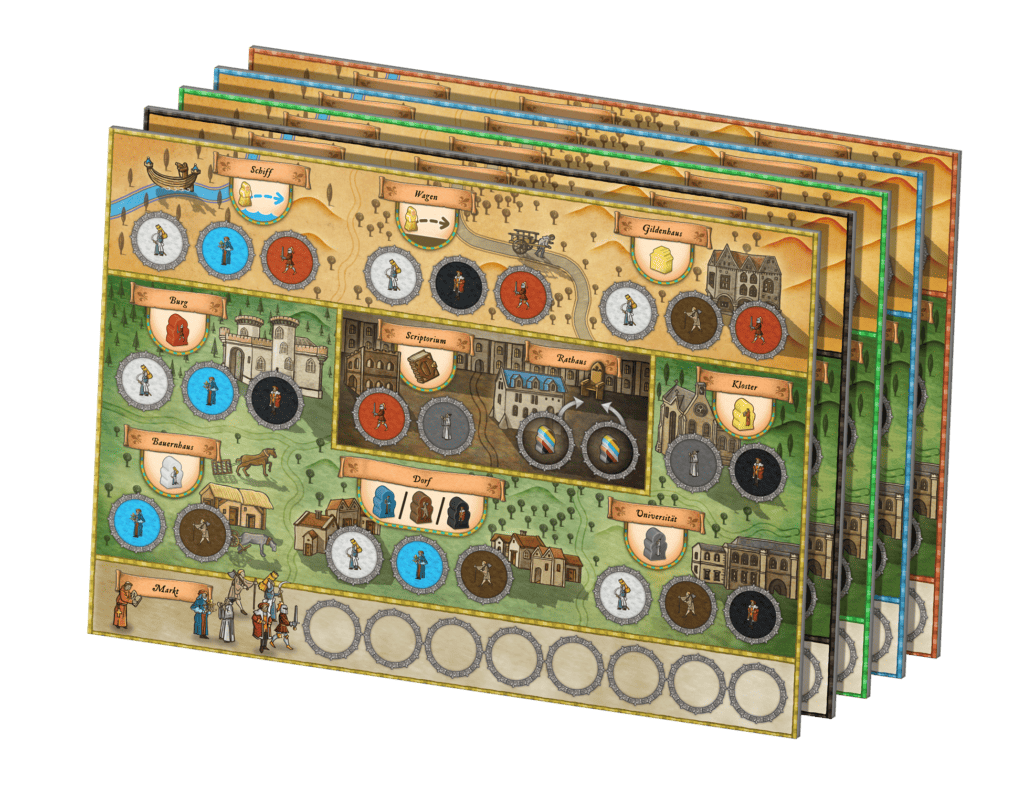 L’édition limitée Orléans Jubiläumsbox comprend le jeu de base Orléans, les trois grandes extensions – Invasion, Commerce & Intrigue, et La Peste – les huit extensions Ortskarten, et trois nouvelles tuiles Ortskarten, ainsi que les dés qui vont avec. Cette occasion s’adresse vraiment aux fans car la boîte n’est prévue qu’en allemand et anglais. Tandis que les Châteaux de Bourgogne cartonne à l’international avec son reprint sur Gamefound fédérant actuellement plus de 15 000 soutiens, on aurait pu souhaiter voir Dlp suivre un chemin semblable mais il n’en sera rien : l’édition luxe d’Orléans n’est dispo que sur le site de l’éditeur et ne sera pas trouvable ailleurs (peut-être qu’elle pourrait apparaître à Essen 24 si l’éditeur a encore des copies disponibles d’ici là) ni dans d’autres langues. Cela étant dit, le jeu, qui avait été en lice au Kennerspiel des Jahres en 2015, n’utilise pas de texte sur son matériel.