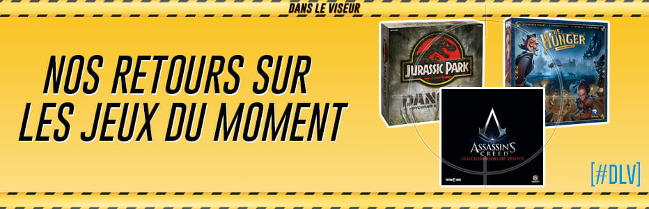 Dans le Viseur, cette fois, trois jeux de société bien différents : The Hunger + Assassin’s Creed + Jurassic Park Danger. Thomas & Marilyne ont pu s’y frotter et vous en parlent à chaud !