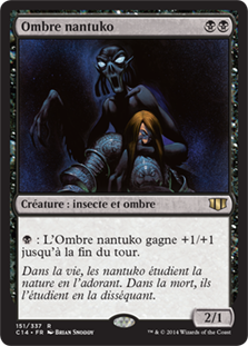 Parfois, des cartes sont suffisamment emblématiques et bonnes pour qu’on les réédite telles quelles, comme, dans ce set, Bénédiction selon Gaïa ou les mythiques Elfes de Llanowar. Par contre, d’autres gagnent en puissance ; jugez plutôt cette stricte amélioration des Ombres, en termes statistiques. Pour information, l’ombre nantuko a longtemps été considérée comme une carte « trop forte pour être jouable ». Oui, l’obsolescence existe dans les jeux à collectionner et évolutifs, et non, c’est pas très marrant.