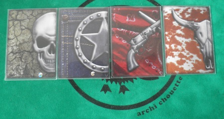 D’ailleurs, comment se fritte-t-on, dans ce jeu ? C’est bien simple : avec une main de poker. Exit les valeurs attaque/défense à la Magic l’Assemblée ou Hearthstone, et bienvenue à un score global : les bullets [balles] d’un dude représentent sa capacité de combat. Par défaut, on abattra une main de cinq cartes. Les scores de bullets permettent soit de piocher plus de cartes initialement (silver bullets / stud) [balle d’argent / étalon] ou de se défausser de certaines cartes pour en repiocher autant (brass bullets / draw) [balles de bronze / tireur]. Les mains sont hiérarchisée et la différence entre les mains détermine le nombre de casualties [pertes] que subira le perdant. En cas d’égalité, une perte est appliquée à chaque joueur. On doit toujours dépenser le maximum de pertes possible. Une perte signifiera qu’un dude est défaussé et qu’il sera remélangé dans le deck, alors que l’application de deux pertes sur le même dude va « ace » [zigouiller] ce dude. Il ne sera pas sera donc retiré de la partie…