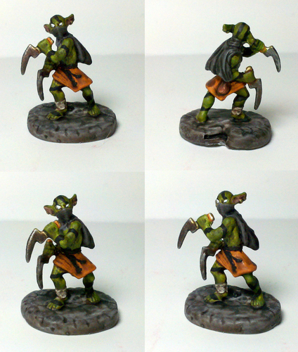 – Je me laisserais pas faire ! J'aurais dû te voler ton arc ! Tiens, viens manger mon couteau ha ha ! » répond le Gobs en lançant 10 dés.