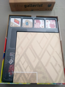Chez les joueurs on est bien sûr très sensibles à toutes ces questions. “La boîte c’est important, c’est l’écrin du jeu, nous dit Atom. Par exemple, les boîtes des Lacerda chez Eagle Gryphon Games sont souvent énormes (comme The Gallerist ci-dessous), mais tout est à sa place, bien rangé, rien ne bouge, et c’est devenu le format idéal. A contrario, ça ne se passe pas très bien pour Co2 aux édition Giochix car la boîte est plus classique et avec les Stretchs Goals le couvercle bombe un peu. C’est une des raisons pour laquelle les joueurs la vendent !”