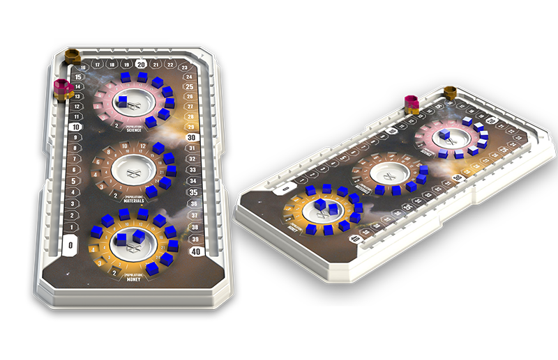 Au niveau du corpus des règles, on notera qu’un joueur peut être éliminé si tous ses disques et navires sont retirés du plateau et que les découvertes peuvent être revendiquées sans qu’un disque d’Influence ne soit placé si vous explorez et placez un nouvel hexagone ou si vous parvenez à détruire tous les Anciens / SDCG dans un hexagone en fin de la phase de combat. De plus, une action d’influence ne peut désormais pas être utilisée deux fois dans le même hexagone. Par ailleurs, si vous avez des relations diplomatiques avec un autre joueur, vous pouvez traverser ses hexagones vides (comme dans l’éveil des anciens). Avoir des vaisseaux dans l’hexagone d’un autre joueur à la fin de votre action est considéré comme une attaque. Enfin, le premier joueur à passer reçoit maintenant 2 Argent. Enfin, la partie se déroule désormais sur 8 tours au lieu de 9.