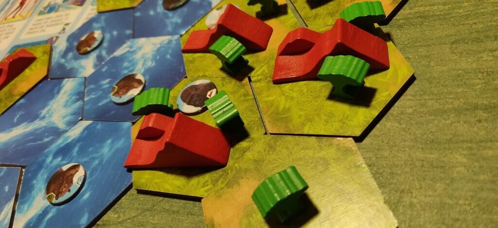 La rejouabilité est quant à elle assurée à plusieurs niveaux. D’une part, via le paysage en construction qui ne sera pas le même d’une partie sur l’autre, or, cela est déterminant pour de nombreux objectifs à points de victoire. D’autre part, via le choix des animaux qui conquerront le continent – cela influera aussi sur les objectifs à réussir.