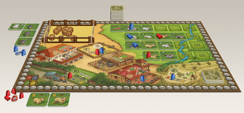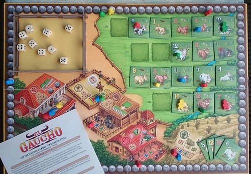 Nous avons quand même des thèmes originaux. Regardez moi ça : Arve D. Fühler (l’auteur allemand du joli Pagoda, preview et fiche par là) qui vous propose d’incarner un baron du bétail envoyant ses Gauchos (« gardiens de troupeaux » – je vous l’dis au cas où vous soyez comme moi -) dans l’immensité de la Pampa pour capturer un max de jolis bovins. Dites-vous bien que c’est pas tous les 4 matins qu’on a des jeux de plateau avec de la pose d’ouvriers et des dés sur un thème comme ça avec du rodéo et des lassos. En plus on retrouve Denis Lohausen aux pinceaux, c’est pas totalement désagréable.