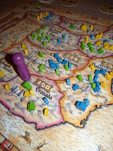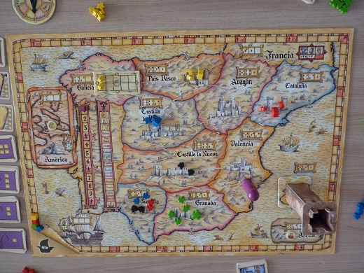Chaque joueur est à la tête d’une famille de nobles (représentée par votre Grande) qui envoie ses troupes de caballeros à travers les différentes régions de l’Espagne du XVè siècle, en cherchant à les placer judicieusement dans chacune afin d’obtenir des points de victoire qui permettront d’établir votre influence et de remporter la partie.