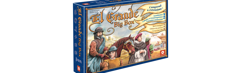 En voilà une bonne nouvelle ! La Big Box de ce grand Ancien qu’est El Grande est attendue depuis un moment maintenant. Et bien Filo a confirmé qu’elle arriverait très bientôt en français dans le texte. Vous pourrez donc (re)découvrir ce grand classique dans une édition anniversaire (et oui, 20 ans !) qui propose toutes les extensions en plus du jeu de base : Grandissimo, Colonies et Grand Inquisiteur, Extension Anniversaire, Roi & Intrigues, Edition des Joueurs, Cartes spéciales.