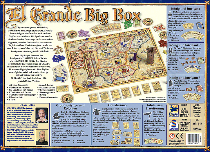 Ensuite, songez que Asmodée, à la reprise de Descartes il y a un peu plus de 10 ans je crois, avait « nettoyé » le catalogue comme ils disaient, et donc El Grande faisait partie de ce nettoyage… et oui…