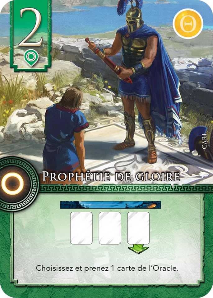 Ces quêtes vont déterminer combien d’or et de points de victoire on gagnera à la phase d’écriture des légendes, et également, et surtout combien de cartes on pourra transférer de son domaine vers son Elysium afin d’écrire des légendes. Elles sont donc primordiales, et devoir prendre une quête inachevée (carte verso grise), est beaucoup plus pénalisant qu’on ne pourrait le penser à la lecture ou explication des règles.