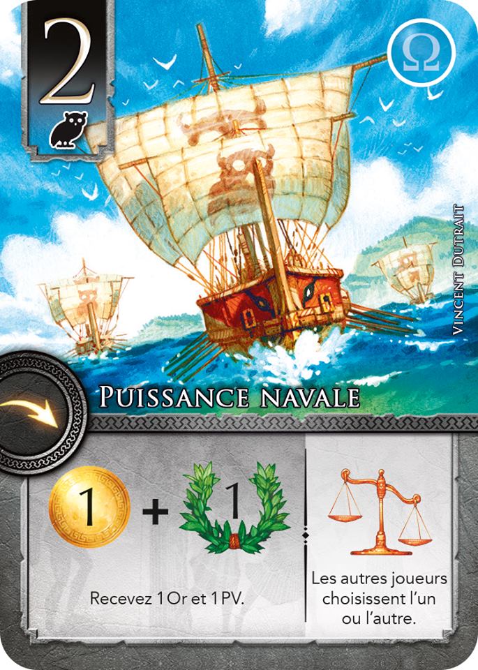 Je pense que le fait d’avoir plusieurs dieux est une force. Certes, les 56 combinaisons possibles ne vont pas réellement donner 56 sensations de jeu différentes, mais il me semble évident que la présence ou l’absence de certains dieux va influencer la façon d’appréhender les cartes. On peut voir déjà dans le set de base conseillé que le dieu Neptune, avec son agressivité, modifie la donne selon que ses cartes sortent en nombre en début de partie ou pas. Cela ne peut donc que s’enrichir avec les autres dieux.