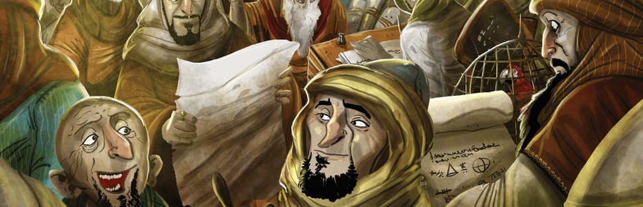 Dans Érudits du Tigre du Sud, nous incarnons des notables du régime abbasside qui rivalisent dans l’art de faire progresser la culture et la recherche, ce qui octroiera du prestige et la reconnaissance du Calife. Nous rapporterons des parchemins de différents endroits du monde connu, nous embaucherons des traducteurs qui nous aideront à les retranscrire en langue arabe. De plus, nous apporterons notre contribution à l’avancée de la recherche scientifique dans six domaines différents : mathématiques, physique, chimie, philosophie, biologie et astronomie.