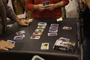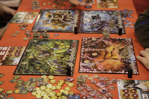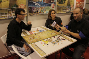 Vous voulez savoir sur quels stands nous sommes allés ? Et bien nous avons commencé la journée d’hier avec la Mage Company, les animateurs aux Tshirts orange de chez orange nous ont présenté 12 realms avec les diverses extensions et le proto de Raid & Trade de Malte Kühle & Charalampos Tsakiris qui situe son action 5 ans après la 3e guerre mondiale – jeu de négociation et de gestion avec des figurines dont j’avais parlé il y a quelques semaines déjà via une petite news.