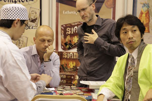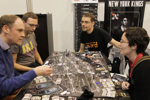 Mais comment rester coucher quand on sait que le monde entier du jeu de société se trouve réuni là ? Et aujourd’hui on a encore plus de rendez-vous d’interviews, ça promet. Mais peut-être que demain nous arriverons à jouer ! Si vous voulez des impressions de gamers qui ont pu trouver quelques tables, c’est sur le compte rendu de la E-Team qu’il faut aller. Si vous voulez savoir ce qu’il s’est passé dans notre journée, vous êtes au bon endroit.