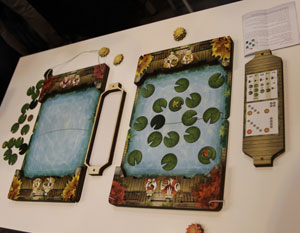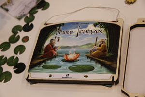 Et nous nous sommes longuement arrêtés, très admiratifs, devant la version bois de Haru Ichiban de Bruno Cathala, désignée par Ideal Edition et fabriquée à la mano par Vermicelle – une édition luxe qui s’est vendue comme des petits wurstcurry ! Ils avaient même envie de mettre les quelques derniers exemplaires qu’ils s’étaient gardés en vente aux enchères, pour le délire. Une belle réussite pour un jeu à deux abstrait, et une belle revanche pour un titre qui a du sortir d’abord sous appli, faute de trouver un éditeur…