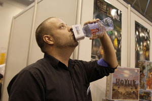 A côté des Viking, nous tombons sur le petit stand de David Perez qui présentait son Ego master et nous faisons une pause à papoter et à l’interviewer.