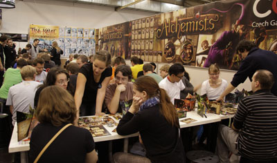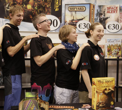 Nous avons donc fait notre petit tour sur le Hall 1, et nous vous ramèneront bientôt de jolies choses filmées, c’est promis. Sha-Man a rencontré les auteurs de Super fantasty I et II (bonne nouvelle, il va enfin arriver en France ! Depuis le temps qu’on vous en parle !! Joie !), de Vudu’ et de Godz (qui s’annoncent miamiam), il est allé voir les braves de Czech Games Edition pour voir un peu de quoi il retournait !