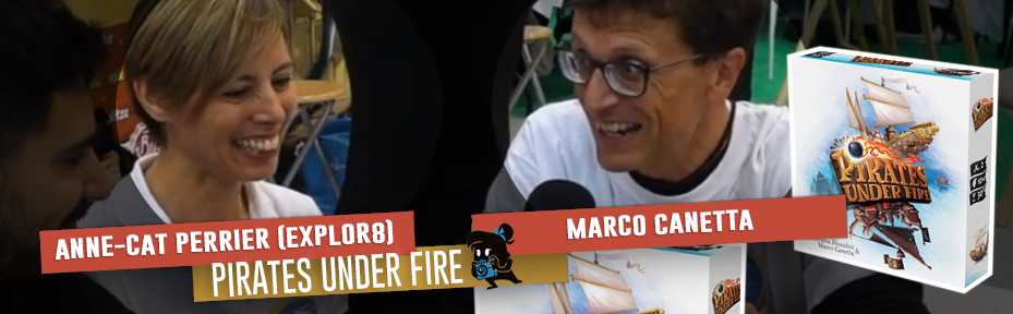 Nous sommes ici sur le stand de Explor8 avec Anne-Catherine Perrier (Explor8) et Marco Canetta (co-auteur du jeu avec Stefania Niccolini) qui nous parle du titre Pirates Under Fire.