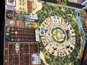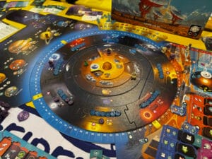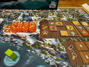 Tout le sel du jeu est dans le draft des dés. La couleur et la valeur de ceux-ci joue un rôle primordial. Les petits dés vous permettent de prendre les meilleurs emplacements sur les différentes actions mais les gros dés de la même couleur vous permettent d’augmenter sur les pistes du jeu. Au fil de la partie vous gagnez de plus en plus de bonus et les Actions deviennent de plus en plus longues. Plus le jeu avance, moins la contrainte au niveau des ressources se fait ressentir. Toutefois, difficile de jouer sur tous les tableaux, la fin du jeu arrive généralement avant.