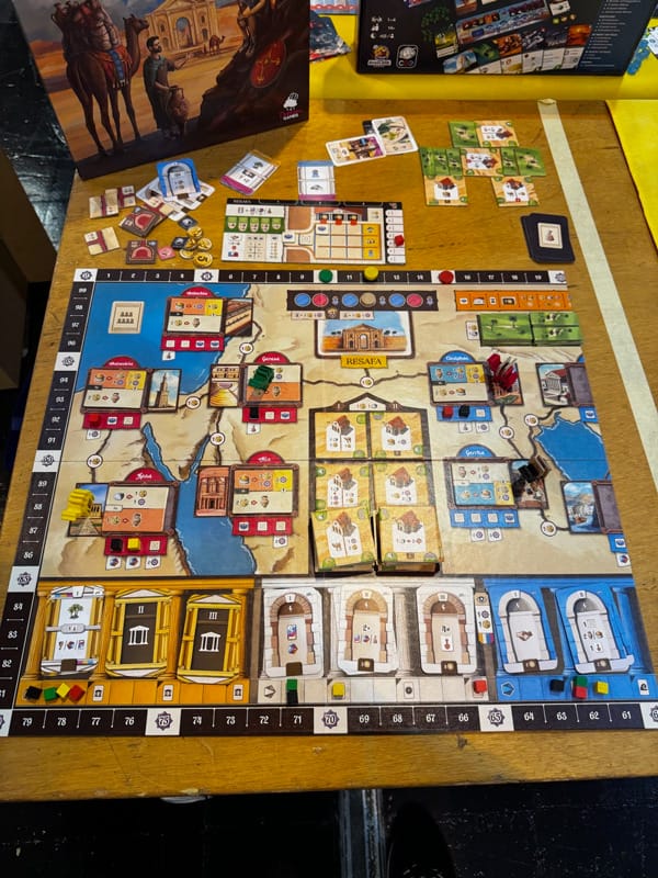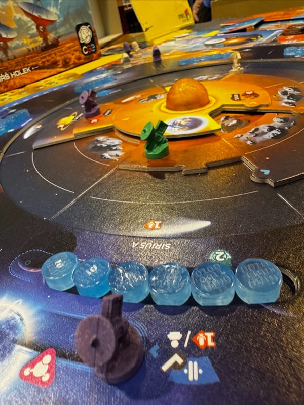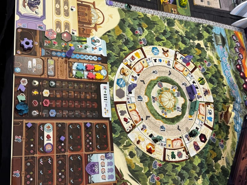Le jeu est super fluide, vous piochez deux jetons dans un sac et vous en choisissez un pour acheter une carte qui vous permettra de réaliser une action. Une fois que chaque joueur a acheté quatre cartes, vous allez pouvoir récupérer des ressources, mais cela se fait dans l’ordre inverse du tour, donc celui qui a récupérer les cartes les « moins intéressantes » va pouvoir se rattraper sur les ressources.