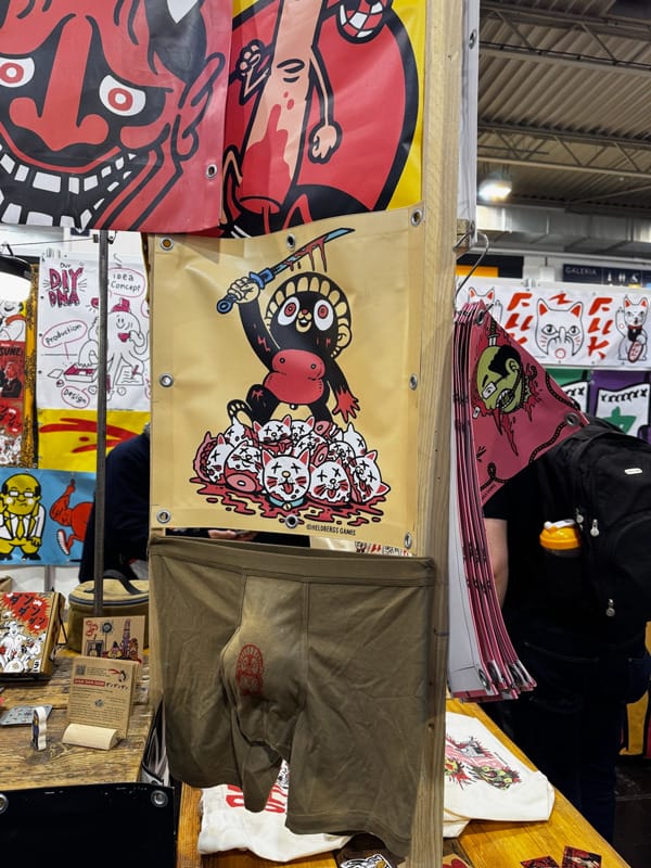 Aussi, il est facile de s’amuser des objets de déco meeple, entre les tasses, les saladiers, les boucles d’oreilles… Il y en a pour tous les goûts. Et s’émerveiller sur les stands de créateurs et dessinateurs. Toujours tentant de leur acheter un petit objet, un bon moyen de les soutenir. Bon nombre de visiteurs, moi inclus, achèteront un jeu qui n’était pas prévu, soit sur un coup de tête, soit attiré par son prix, là c’est souvent avec un petit tour juste pour regarder chez les destockeurs.