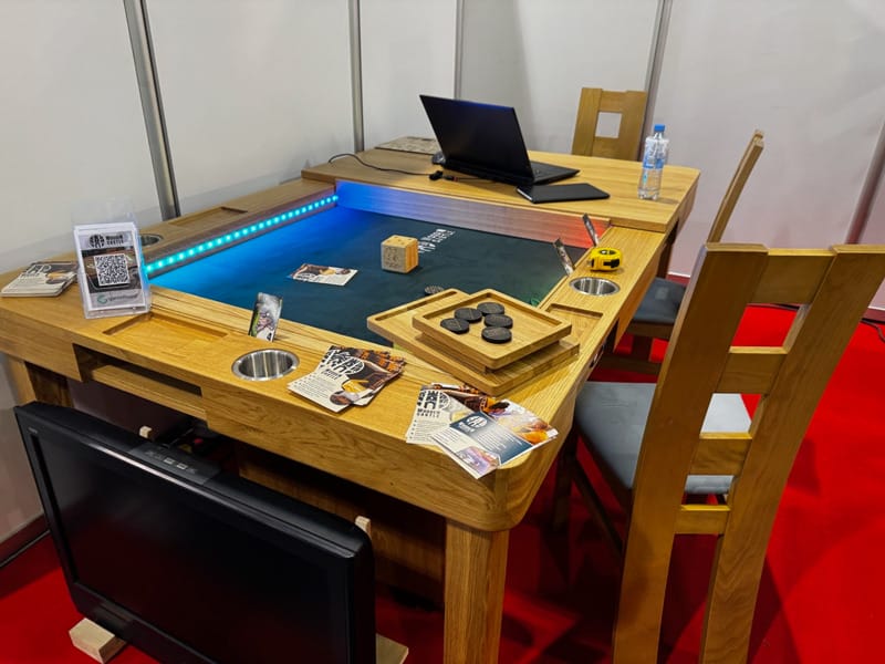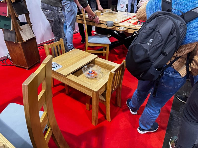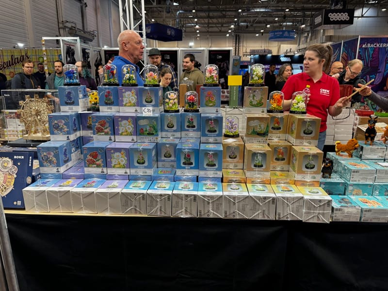 Ensuite, nous glanons des accessoires sur les stands d’objets 3D ou en plexiglas, ces petits objets pour rendre notre expérience de jeu plus agréable. Fouiller ici et là, le sac en toile coloré et brodé pour Les charlatans de Belcastel, un insert pour Deep Sea Adventure, des stickers pour les meeples de Five Tribes. Facile de dépenser 5, 10, 15 € voire des sommes à 3 chiffres.
