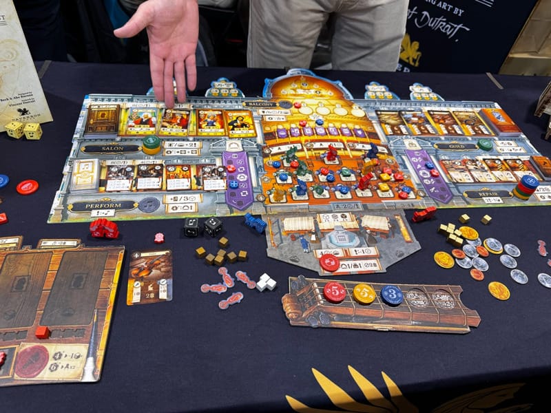 Déjà, faire la queue, surtout chez des éditeurs qui proposent une boîte qui a buzzée en ligne ou précédemment, au GenCon par exemple. Et cette queue peut s’avérer longue, très longue. Elle peut même sortir du hall, c’était le cas l’année dernière pour Lorcana. Cette année pas de longue file interminable, mais tout de même. Devir, Asmodee, Matagot pour en citer quelques-uns, ont eut l’honneur de couper les allées durant de nombreuses heures.
