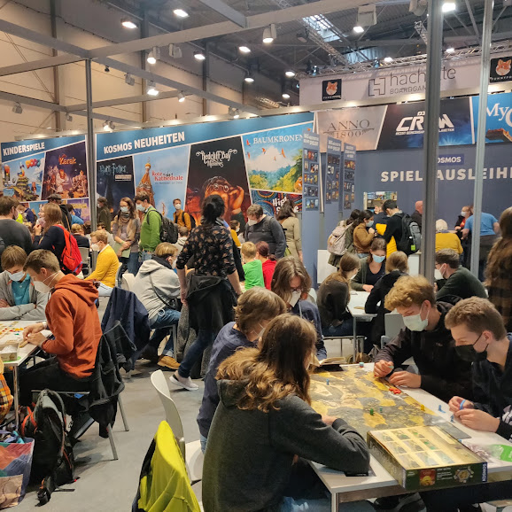 Mes appréhensions étaient grandes jusqu’à ce que j’entre dans le salon. Comment allaient se passer les contrôles sanitaires? Y aurait-il trop de monde pour pas assez d’exposants ? Y aurait-il des tables de jeux libres ? Tous mes doutes ont été balayés dès les premières minutes à fouler les halls du Messe. Le Spiel 2021 allait être le grand retour de la foire aux jeux de société !