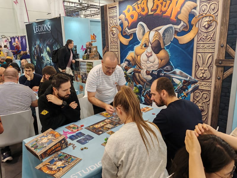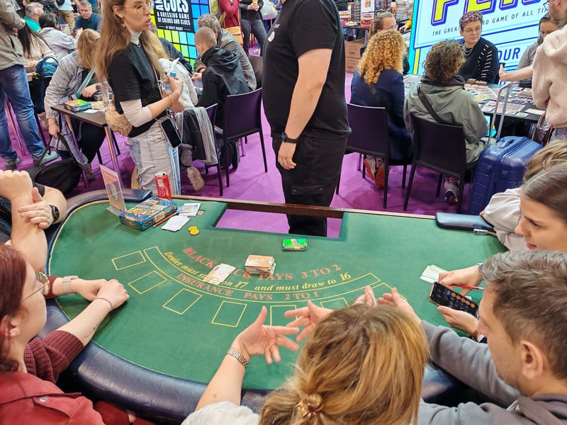 Cette année, plus encore que les autres, le système de réservation semble s’imposer chez beaucoup d’éditeurs qui proposaient des jeux expert. Sans compter, que dans un soucis de faire découvrir le jeu au plus grand nombre, beaucoup proposaient simplement de faire un ou deux tours de jeu, voir même une explication façon tutoriel. Frustrant, il faut l’avouer, mais compréhensible dans le contexte. Heureusement, ce n’est pas encore le cas de tous et on peut encore bien s’amuser sur place.