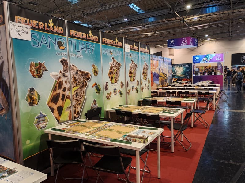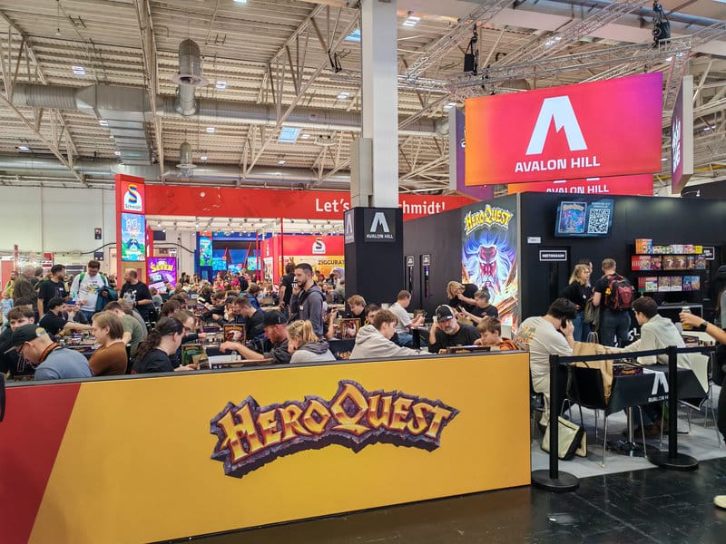 Il faut cependant garder à l’esprit que le Spiel Essen est avant tout un salon commercial. Les éditeurs sont là pour vendre leurs jeux. Contrairement à d’autres festivals, l’important ici n’est pas de montrer ou de faire découvrir les jeux mais de les vendre. Mais je ne dis pas qu’il n’est pas possible d’y jouer et de se faire plaisir à déambuler parmi les halls. Bien au contraire. De nombreuses tables sont disposées partout et vous pouvez aisément trouver votre bonheur pour peu que vous soyez un aventurier ludique. Si au contraire, vous avez une whishlist bien définie avec les dernières nouveautés qui buzzent à mort ou simplement les superproductions Asmodee, alors il va falloir vous armer de patience. Comme partout, ces endroits vont être ciblés par nombre de personnes et les listes d’attente vont s’allonger.