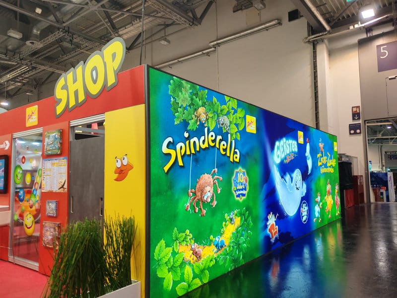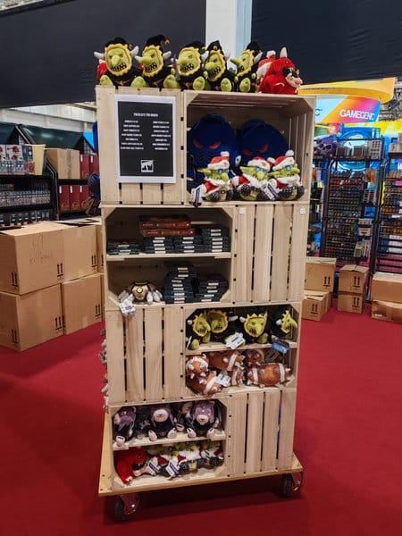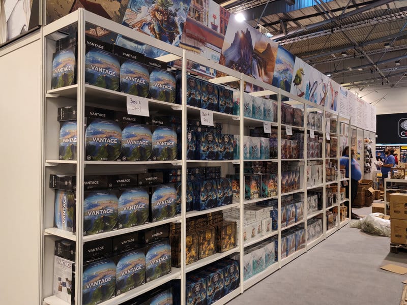 Les panneaux sold out sont rapidement présents. Certains éditeurs ont d’ailleurs choisi de ne mettre qu’une petite quantité de jeux disponibles chaque jour pour que tous puissent en profiter tout au long du séjour (dans les faits si vous n’y étiez pas dès l’ouverture, peu de chance d’en avoir tout de même). Les jeux sold out rapidement c’est assez récurrents depuis quelques années. Cette année par contre, à cause de problèmes logistiques ou de frais de port élevés, certains éditeurs n’ont malheureusement même pas reçu leurs jeux à temps pour le salon. D’autres n’ont même pas pu se rendre au Spiel pour y tenir un stand. Mais l’euphorie est toujours bien présente et même si on voit moins d’énormes acheteurs compulsifs qu’il y a de nombreuses années, les jeux se vendent tout de même comme des petits pains.