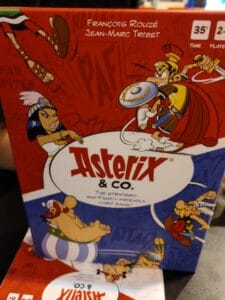 Jeu de cartes édité chez Matagot ayant pour thème l’univers d’Astérix. Au grès des albums qui vont vous apporter des challenges différents, chaque joueur va disposer de deux champs de bataille, un avec son voisin de droite et un autre avec celui à gauche. Suivant la couleur de votre côté, vous devrez jouer des cartes romains ou gaulois (les mercenaires pouvant aller partout). 15 points pour remporter la carte album. 50 points vous remportez la partie, ce qui se fait donc avec 3 albums remportés, mais également de casques à gagner lors des résolutions de bataille.