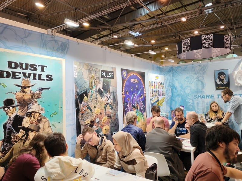 Avant de nous rendre à Essen, nous avons pu réserver une table pour essayer le futur jeu de Trevor Benjamin, Brett J. Gilbert et David Thompson (I). Trevor et David font parti de mes auteurs préférés, l’envie de découvrir ce jeu était forte.